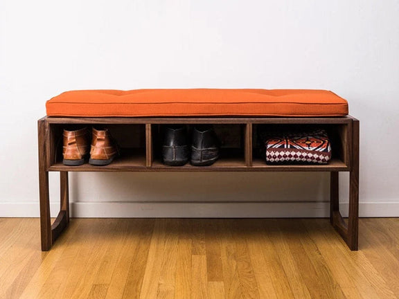 This bench is the perfect place to put on your shoes, flip through a magazine or relax with company. It's an original design, but inspired by Mid Century Modern/Scandinavian sensibilities.