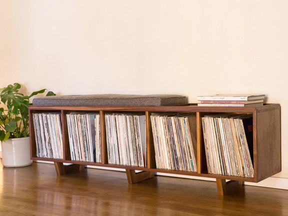 Vinyl LP Storage bench with Mid Century Modern Stylings